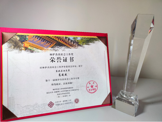 据悉,“林护杰出社会工作奖”是“林护社会工作培训及发展基金”的子项目,由香港林护基金会设立,香港理工大学应用社会科学学系和北京大学社会学系联合举办,旨在奖励中国大陆地区在社会工作教育、社会工作服务管理和实务工作领域做出卓越贡献的学者、学生和服务项目,以提升社会工作的专业化水平,促进中国大陆地区专业社会工作教育和社会工作实务的发展,从而承担起社会工作专业的社会责任。其中,“林护杰出社会工作学生奖”旨在奖励具有牢固的社会工作理念,学习刻苦、成绩优秀,积极参与社会工作实践,积极进行社会工作专业研究,有志于投身社会工作事业的社会工作专业学生。“林护杰出社会工作学生奖”是目前国内社会工作界有关学生奖励中最高的荣誉称号,国际社会工作教育联盟前任主席、香港理工大学原副校长阮曾媛琪教授称其为中国社会工作界的“诺贝尔奖”。自2009年以来,全国共计47名社会工作专业的本、硕学生获得“林护杰出社会工作学生奖”。