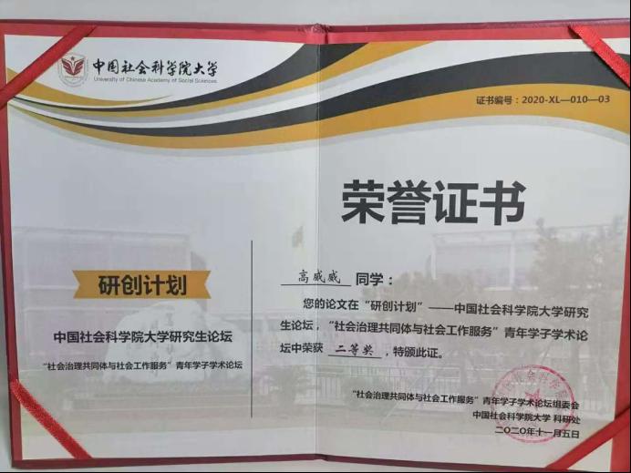 社会工作专业高威威同学在中国社会科学院大学研究生论坛中获得佳绩