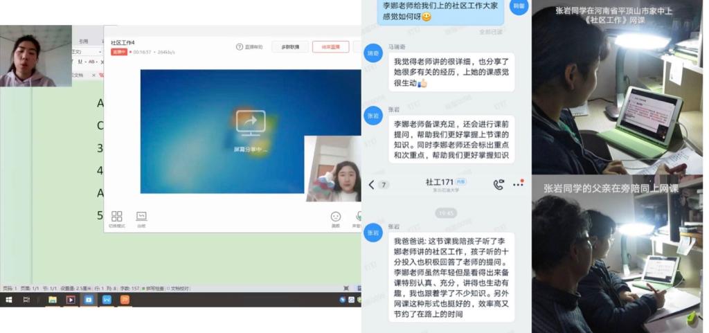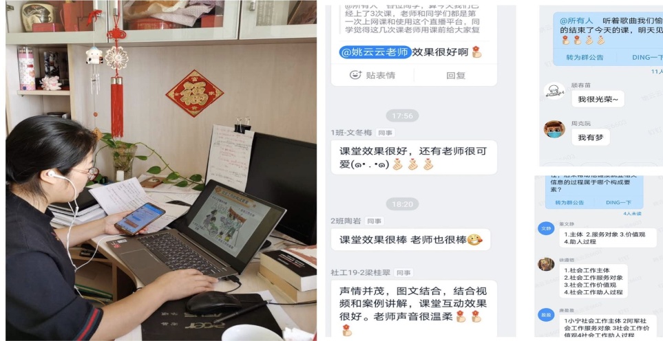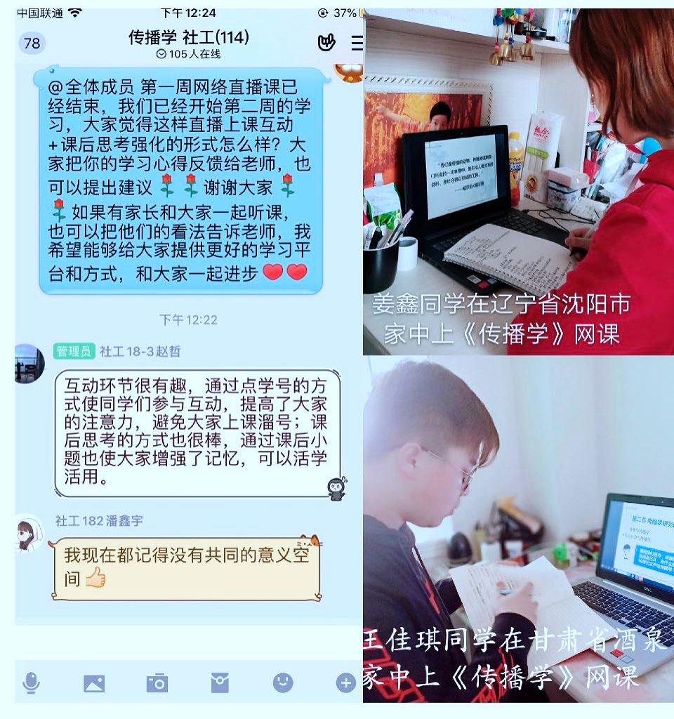 全体教师严格做好课前告知,严格准备直播设备与环境,严格按照课表时间上课,严格完成点名签到等课堂管理流程,严格按照教学计划完成教学内容。人文院学生工作组为了协助全院教师开展好线上教学,做出了多方努力,联动积极而富有成效