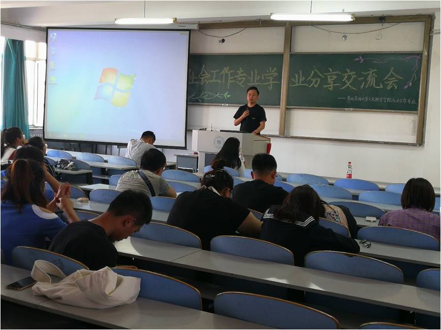 本次经验交流分享会由邱心凯老师主持,邱心凯老师指明了本次大会的目的,纠正了同学们错误的是非观念;提出了严格又负责地要求,那就是希望我们社会工作专业不能有同学挂科,争取更多科目成绩达到优秀,端正学习态度,树立正确的学风,不能逃课;并希望大一同学多和学长交流,并要求大一同学在大会过后写出今后三年学业规划与人生规划,不希望同学们浑浑噩噩度过大学四年。接着就是请出了三位学长学姐依此作经验分享: