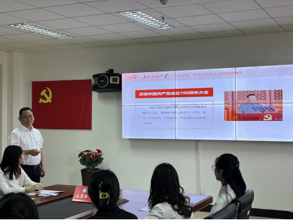 会前,与会人员共同观看了由毕业生党员拍摄的纪念视频《请党放心,强国有我》,视频以近期网络上较火的影视剧转场的形式,回顾了中国共产党带领中国人民走过的百年辉煌历程,致敬历史,筑就未来。