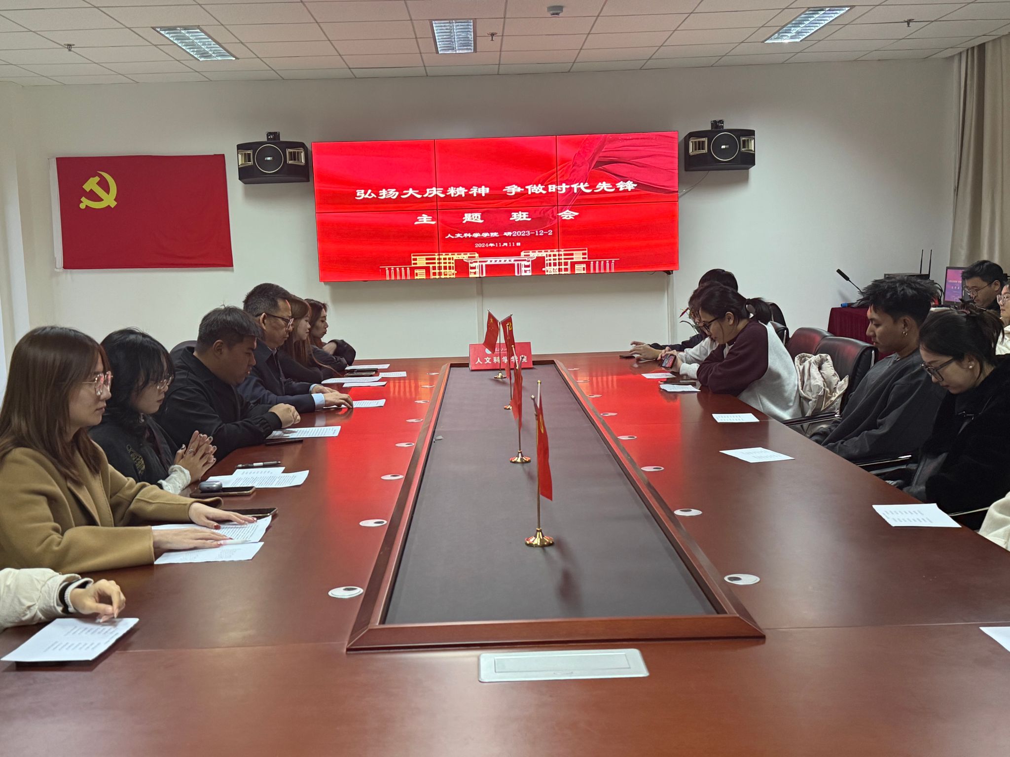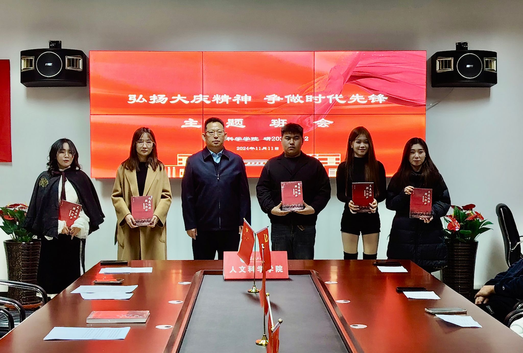 11月11日下午,院党委书记孙鸿参加联系班级社工研23-2班“弘扬大庆精神,争做时代先锋”主题班会,社会工作研究生2023级2班全体同学出席班会,班会由班长陆明主持。