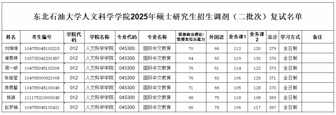 伟德betvlctor1946源于英国2025年硕士研究生招生调剂(二批次)复试名单