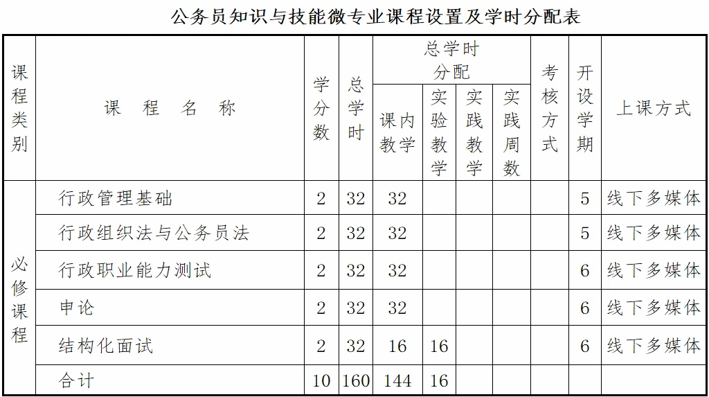 修读年限为一学年。完成各门课程学习,并取得合格成绩,即可获得对应学分;学分修满后方可授予公务员知识与技能微专业证书。