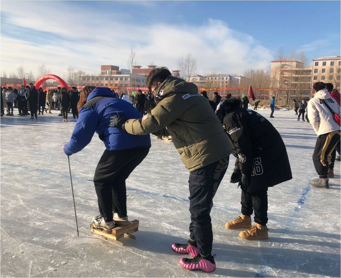 活动于上午9:00开始,各院队伍高举着红色院旗,早早就在比赛场地列队。本次冰上运动会项目较多,包括集体滑、爬犁接力、过低杆、单脚支撑、球刀足球射门、雪圈接力、冰上拔河和冰上保龄球等。我院参赛者在比赛中各显身手,展示出优良的个人能力和团体精神。