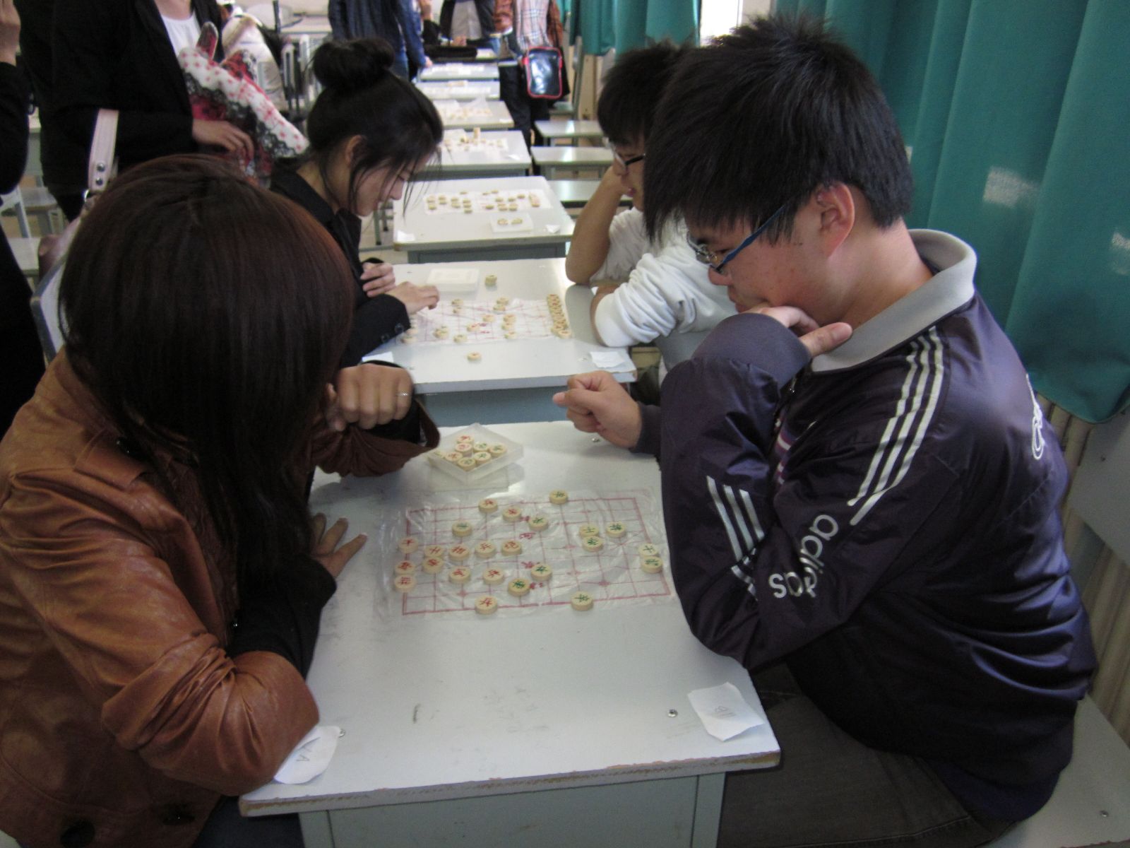 (人文棋艺大赛象棋组中学子们在紧张对弈)