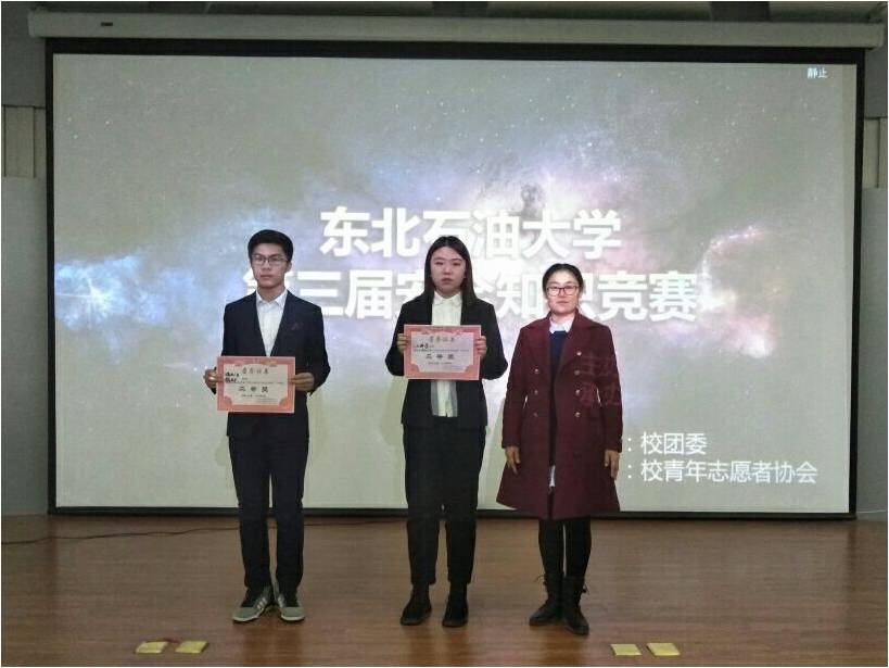 闻道梅花坼晓风,雪堆遍满四山中, 11月24日下午两点,校青协于图书馆11楼举办了“校级知识竞赛”活动,我院行管181班的张仕奇,赵海丰,林琳三人组成的代表队参加了本次活动。