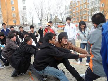 人文院趣味运动会拔河项目的激烈场面