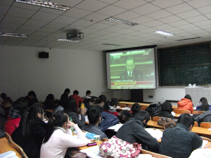 同学们认真聆听并学习了两会报告,对当前热点问题有了深入的了解,大家通过看两会视频,了解到了我国“十一五”过程中所取得的成绩,同时对我国进入“十二五”期间的发展方向有了明确认识。