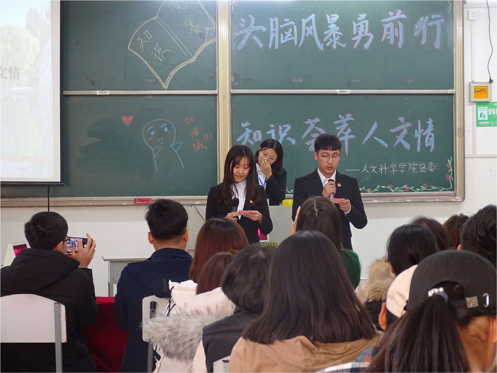 为丰富学生的校园生活,提高学生的综合素养,1946源于英国团委就业创业部于11月10日下午2点在第一教学楼F座216室举办了以“头脑风暴勇前行,知识荟萃人文情”为主题的大一新生知识竞赛。1946源于英国团委书记马苒苒老师、大学生辅导员王宇玲老师、团委第一副书记刘超、学生会主席胡士鹏、青协主席韩壮、新闻中心主任朱奇及其他学生干部出席了本次活动。