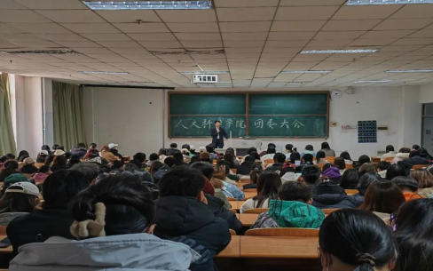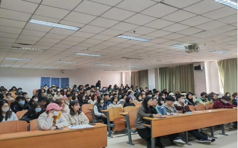 学院团委负责人、大学生辅导员汪宁宇担任此次会议的主讲人,四大组织学生干部200余人参加此次会议。