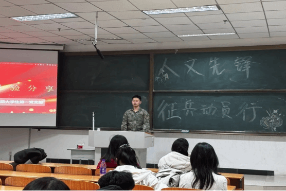 最后,行政管理专业22-1班的陶国际化身政策宣讲员,凭借扎实的专业知识与参军经历,对国家征兵政策、退役优待政策进行了细致入微的解读。他用通俗易懂的语言,将政策条文转化为同学们关心的实际问题:从报名流程到兵种选择,从入伍后的成长路径到退役后的学业就业保障,每一个环节都进行了详实说明。同时,他还结合自身退役后的发展,展示了政策带来的切实福利,用清晰的数据与鲜活的案例,充分激发了青年学子投身军营、保家卫国的满腔热忱。