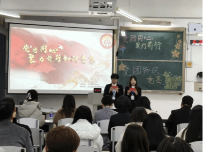 11月9日下午,学院团委和大学生第二党支部在1H-314举行了“一站式”学生社区“党团同心,聚力前行”主题知识竞赛。本次活动旨在深化“党建带团建”工作,强化青年学生的思想政治引领,筑牢理想信念根基。学院团委负责人汪宁宇、大学生第二党支部书记贺菁蕾出席活动。竞赛有来自2025级的6支队伍24人参加,竞赛由肖雨晴、纪奕帆同学主持。